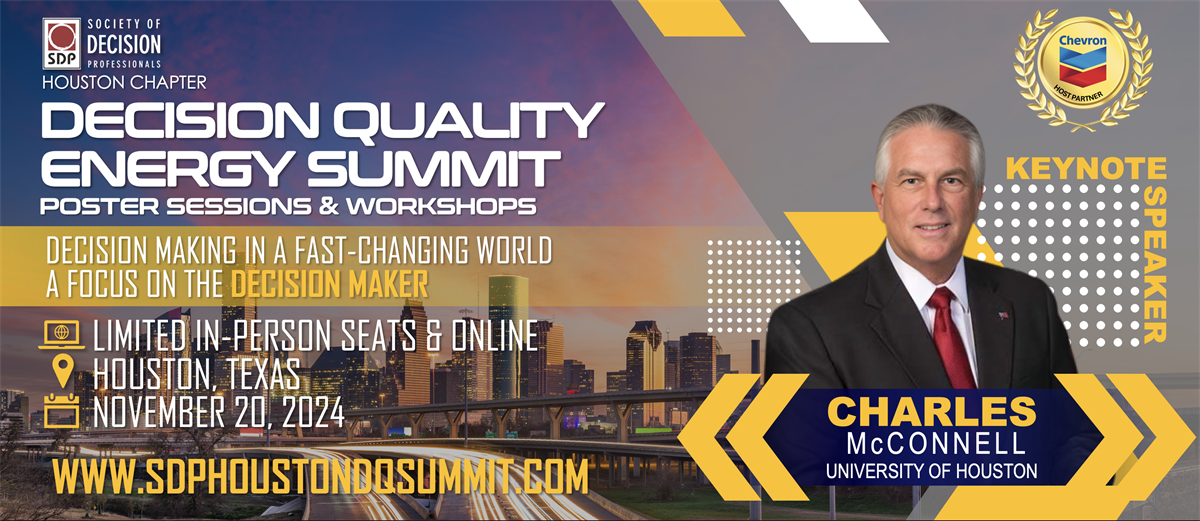 Exciting News! The Society of Decision Professionals (SDP) Houston Chapter is thrilled to announce Charles McConnell, former Assistant Secretary, U.S. Department of Energy, as the keynote speaker for the 2024 DQ Energy Summit on November 20, 2024, hosted by Chevron.